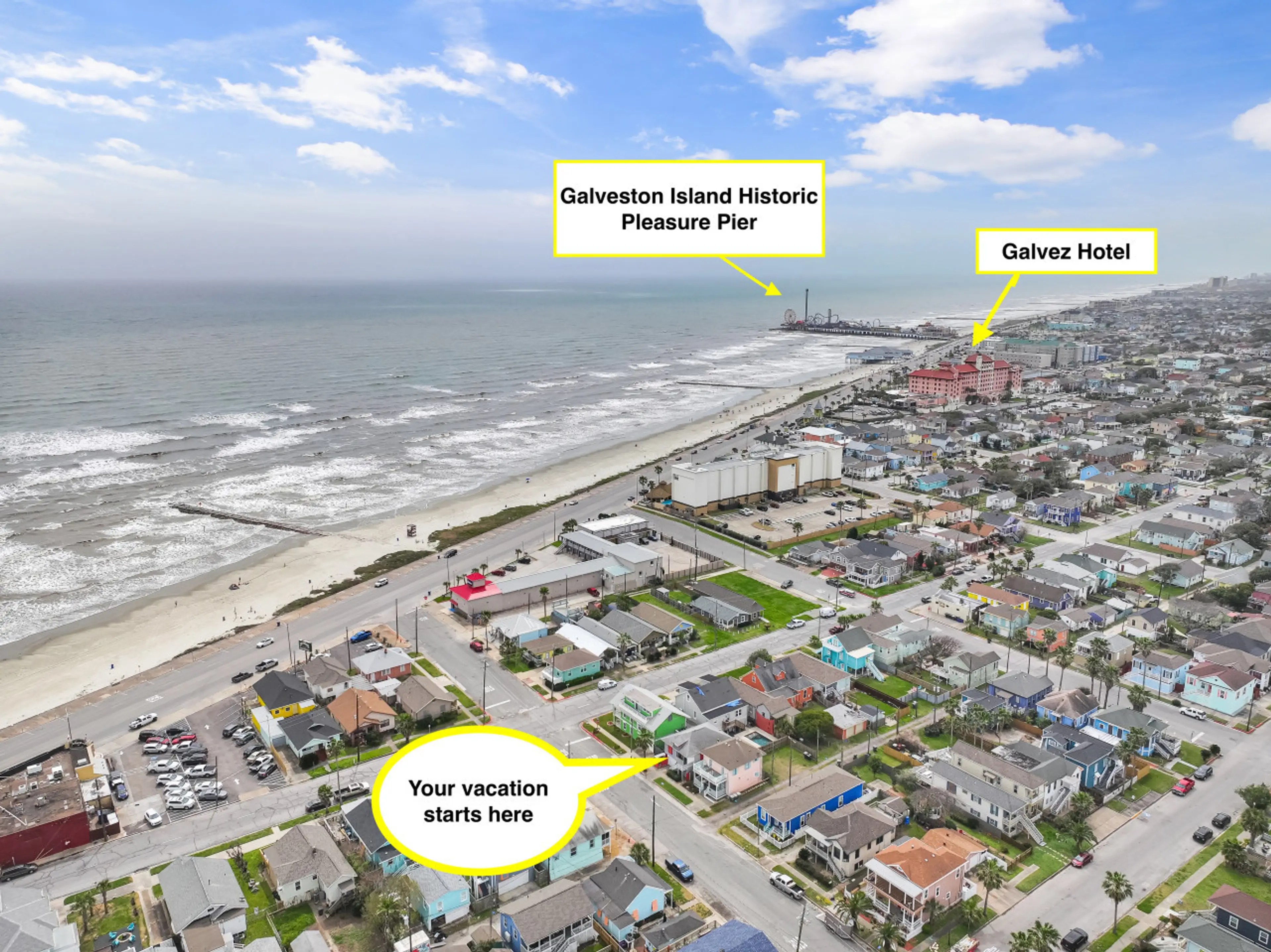 Welcome to the perfect vacation getaway, whether you're seeking a beach or winter retreat; or traveling for work, it is located just a 2-minute walk to the beach. For fun and dining, the Galveston Island Historic Pleasure Pier is only 0.8 miles away. If you're in the mood for shopping, additional di...