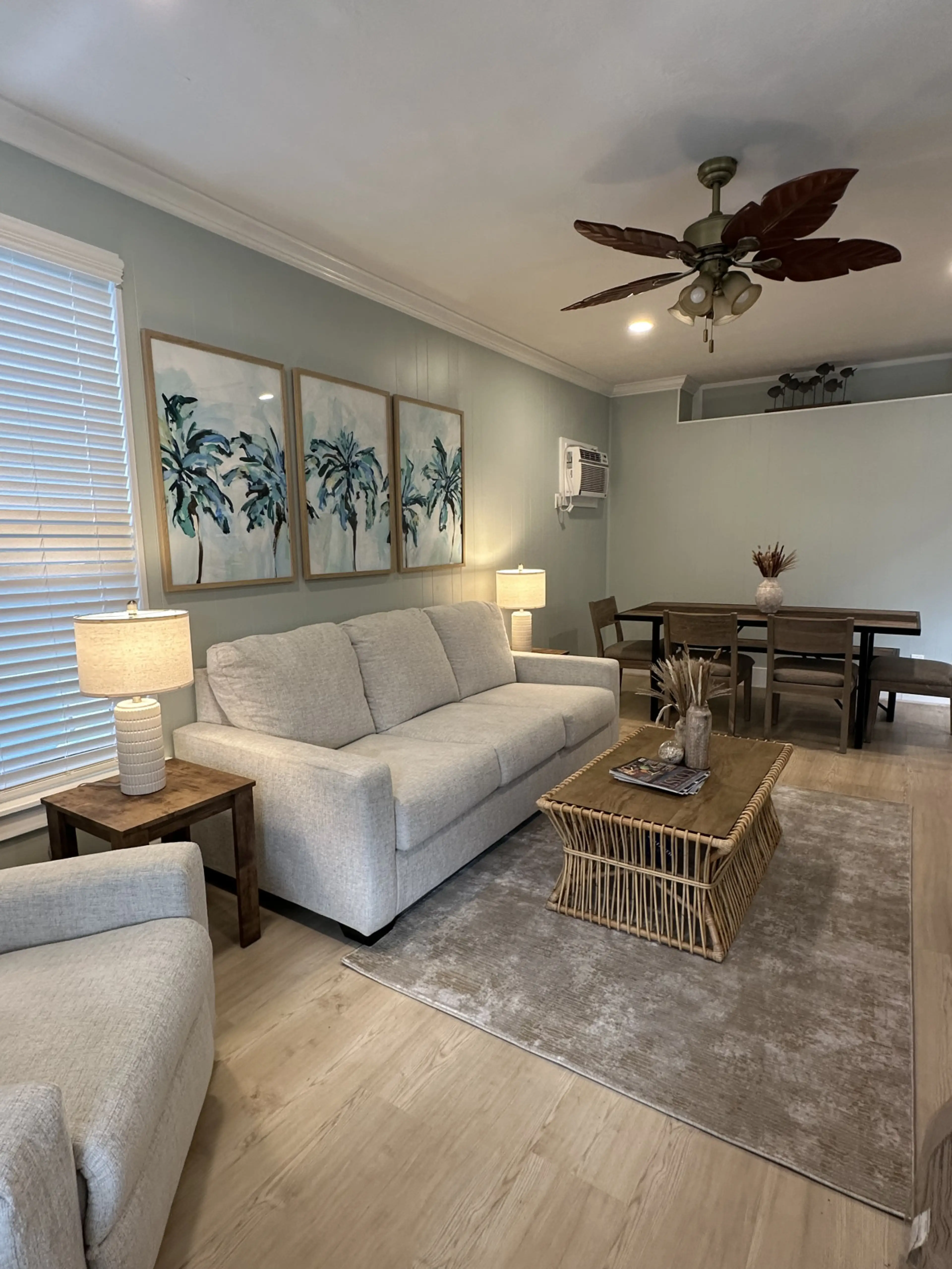 The Lazy Palm cottage is a charming coastal retreat designed with two separate living areas, making it ideal for multi-generational groups who want shared memories by day and personal space at night. The upstairs offers two comfortable bedrooms and one full bathroom, while the downstairs includes a ...